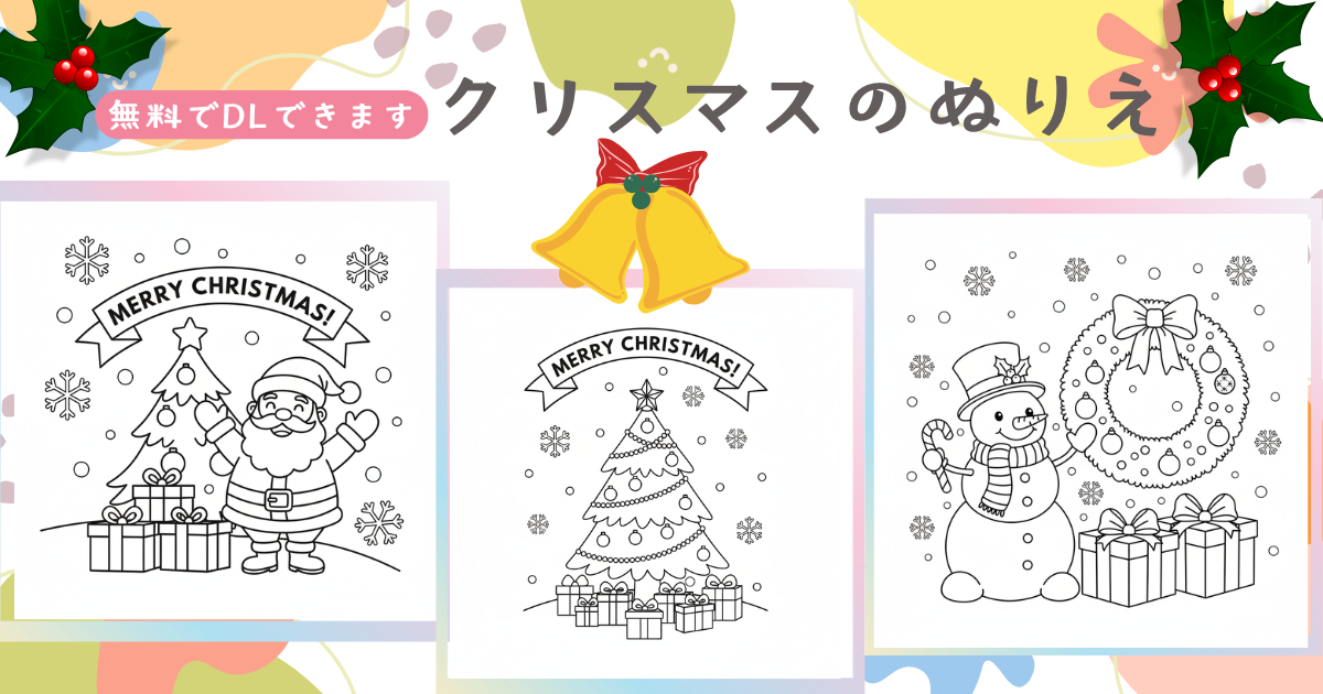 今回ご紹介した「サンタクロース」「雪だるまとリース」「クリスマスツリー」のぬりえをまとめてダウンロードできます。