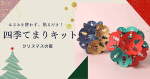 「ペーパーファンタジークラブ(PFC)」シリーズの 四季てまり『クリスマスの夜』は、 切り抜かれた紙を立体的に組み合わせて作る新感覚の手まりアートキットです。 クリスマスツリーの抜き模様が入ったデザインで、 季節の装飾にもぴったり。完成後は壁飾りや吊るし飾りとしてお楽しみいただけます。